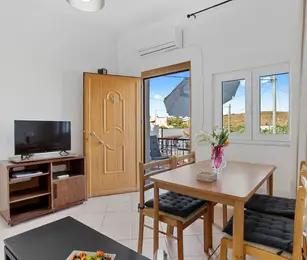 Bella-Maria is a delightful two-story residence set in the peaceful village of Aptera, just steps away from the ancient city ruins. Offering stunning views of both the Cretan mountains and the sea, this house is perfect for families and groups eager to explore the island with ease. Its location near Chania and Crete's main road makes excursions simple and accessible. For those looking to relax, unwind on the shared terrace with a glass of wine and soak in the beautiful scenery. When hunger calls, head to one of the nearby traditional tavernas to enjoy an authentic Cretan meal, making Bella-Maria a perfect choice for comfort, culture, and adventure.